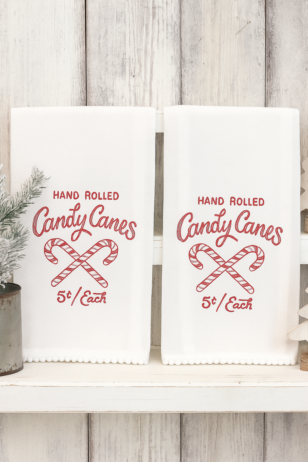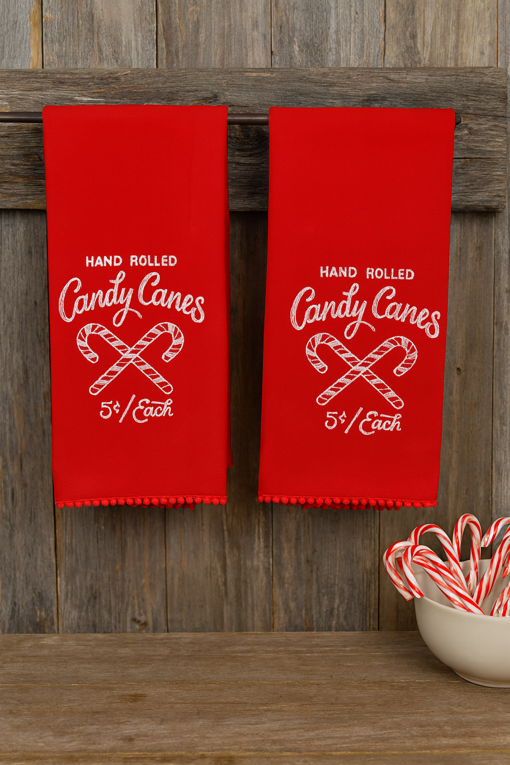 These festive embroidered candy cane towels will add holiday cheer to your kitchen, or make a great hostess gift for the next holiday party you attend. 100% cotton towel, measuring 18" x 28". Choose from a white with red candy canes, or red towels with a white design. Each order comes with one towel