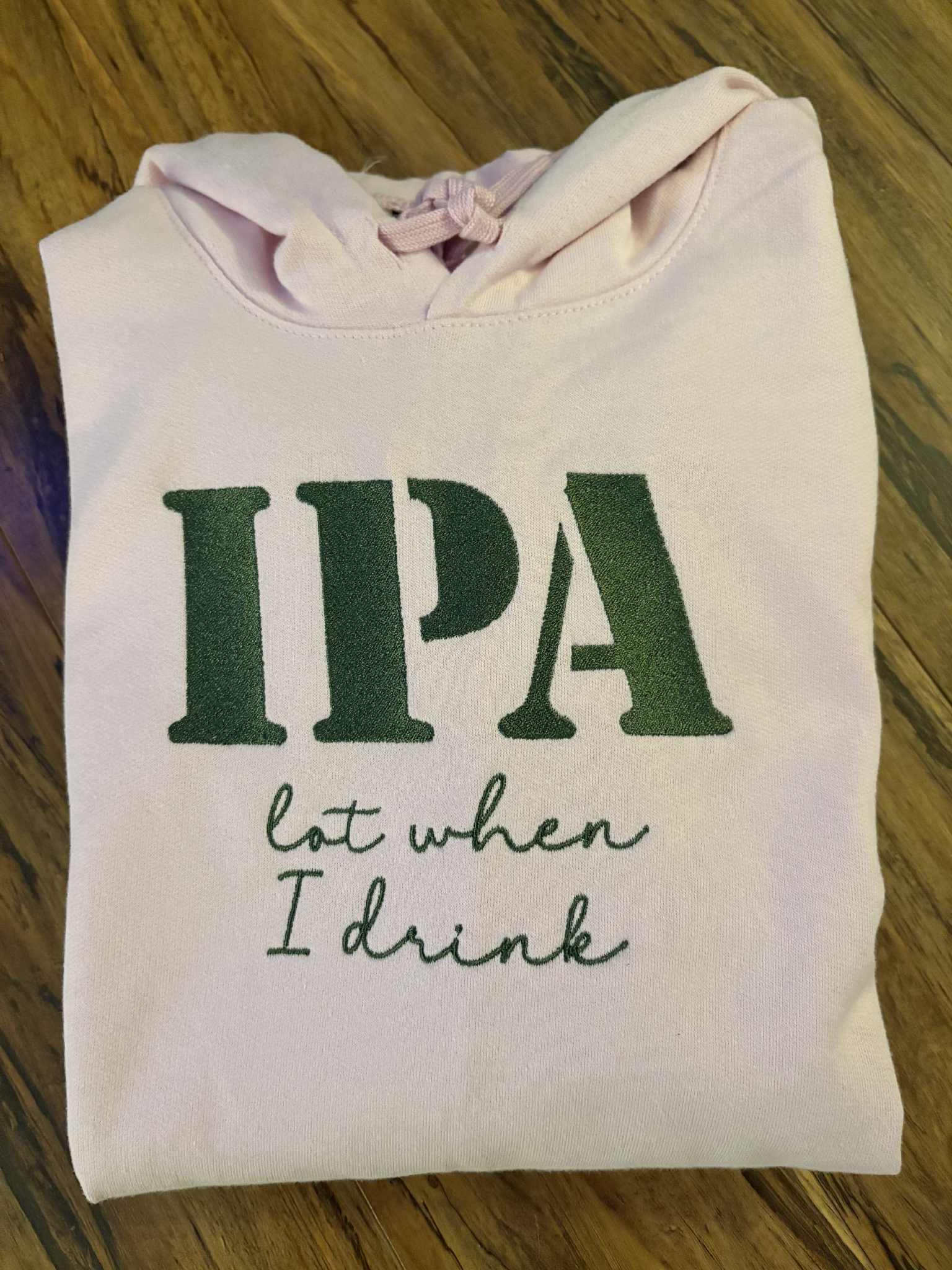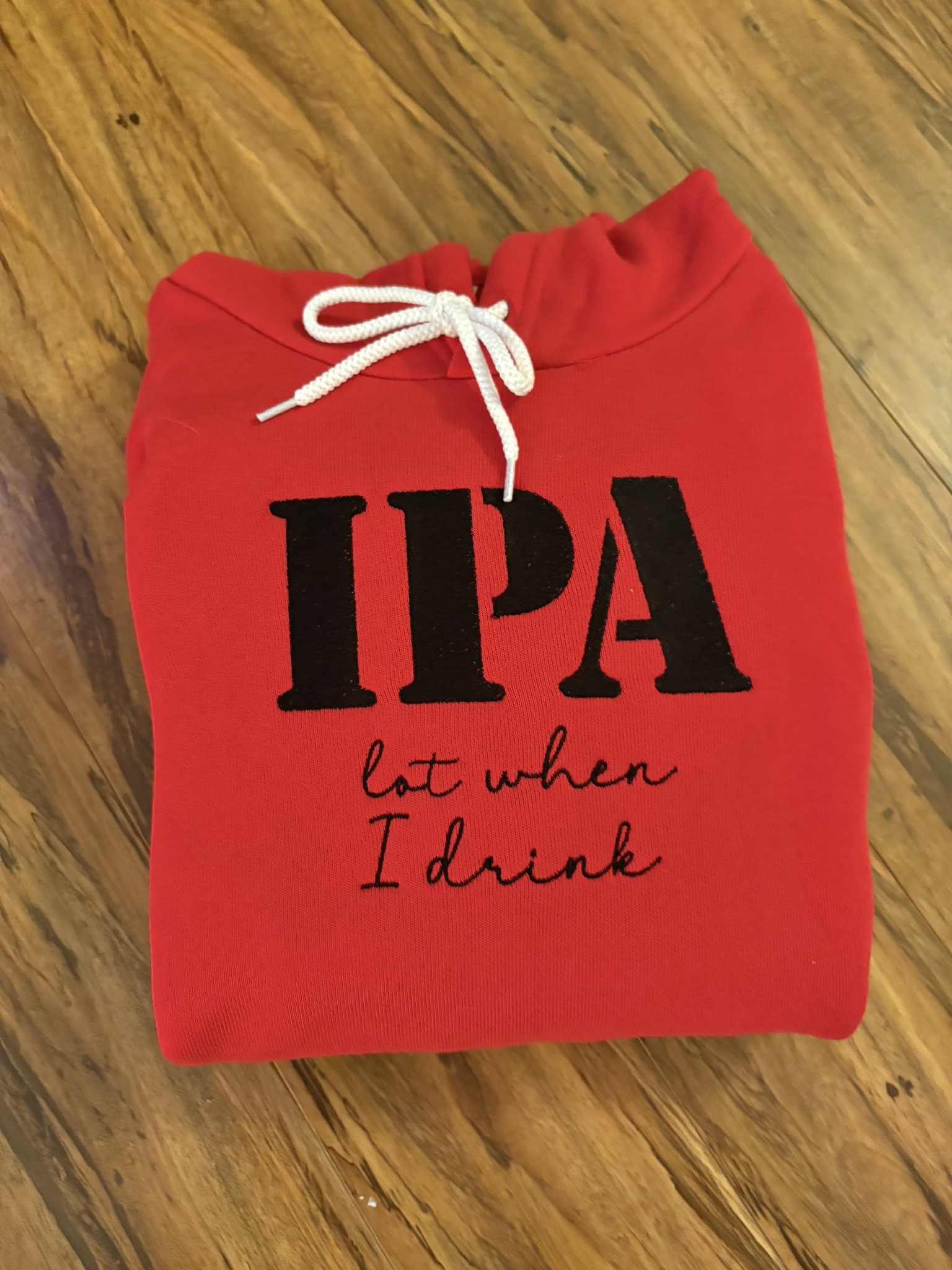 Got a beer lover in your life? They’ll get a kick out of this funny, tongue-in-cheek embroidered hoodie—it’s sure to make people do a double take!