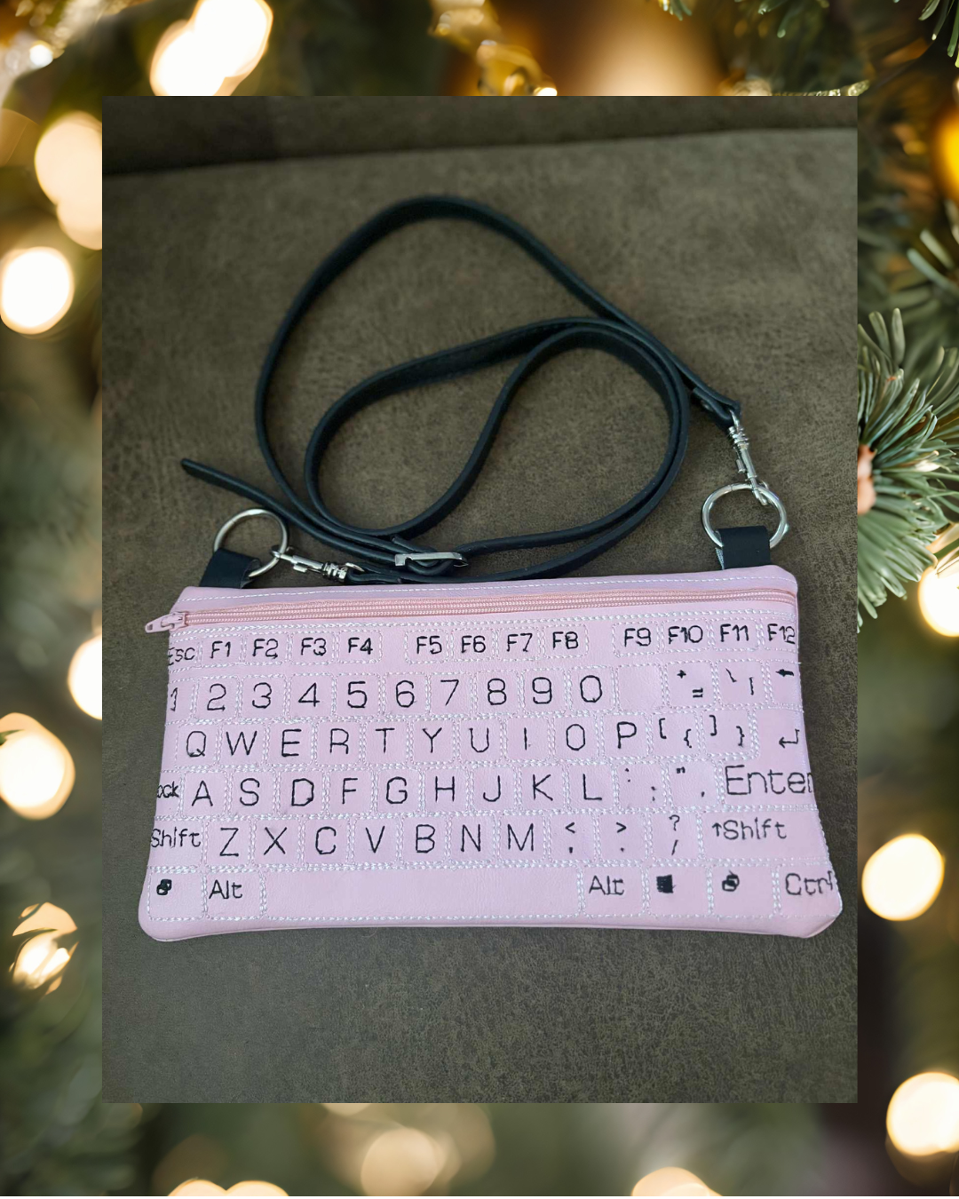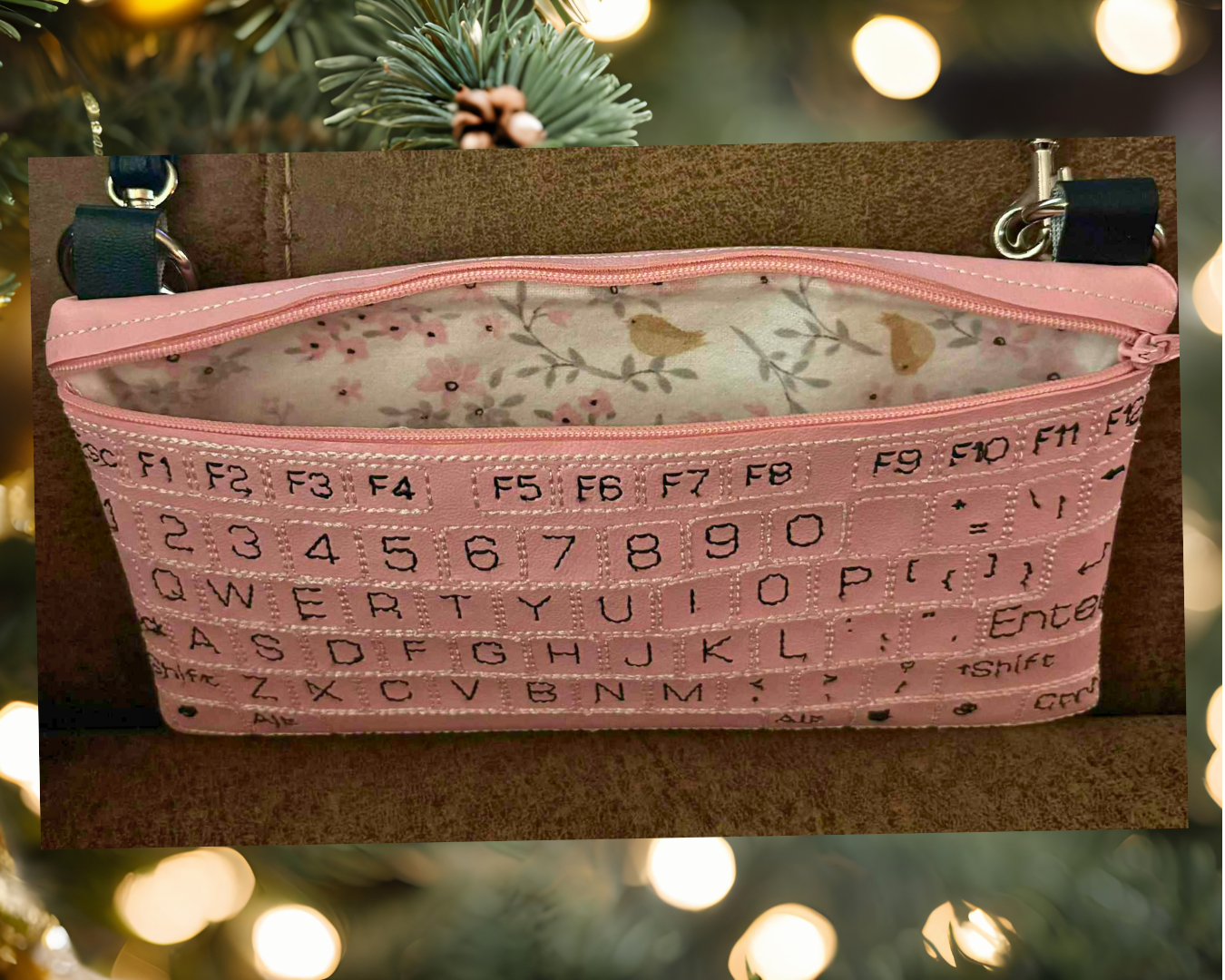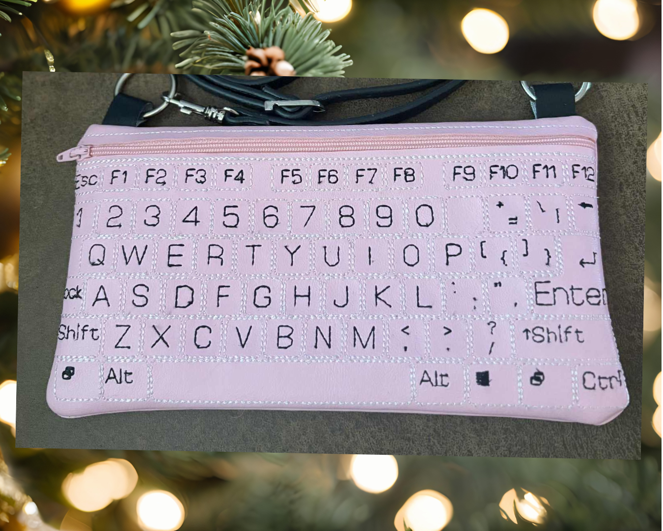 This adorable embroidered crossbody bag looks just like a computer keyboard — the perfect accessory for any gamer, coder, or tech lover! Handmade from durable vinyl with a soft cotton lining, it’s sturdy enough for everyday use and stylish enough to make a statement. The adjustable strap lets you wear it comfortably your way, and it measures about 9" x 5.25", just right for your phone, keys, and essentials.