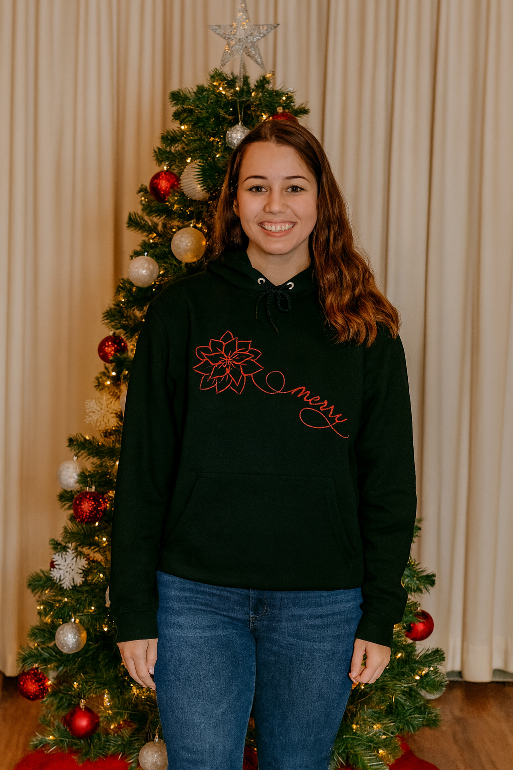 Festive Red Embroidered Christmas Hoodie – Jerzee Brand