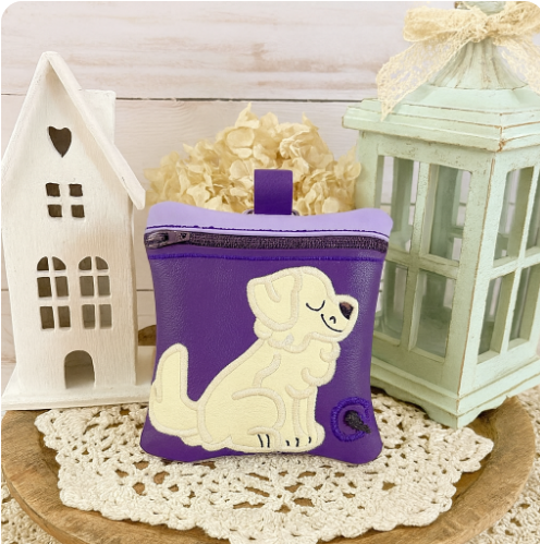 Why carry a roll of plastic bags in your hand when you can hide them inside this adorable zippered bag? Made with vinyl, cotton and an embroidered/appliqued design. Bag is 4"x4" and has attached clasp to hook it to your leash or backpack