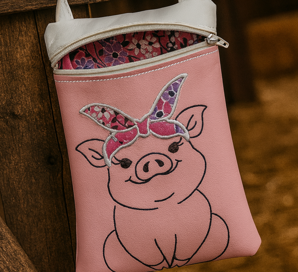 Meet this adorable handmade crossbody bag featuring a little piggie with a colorful bandana — stitched with love and just the right amount of charm.