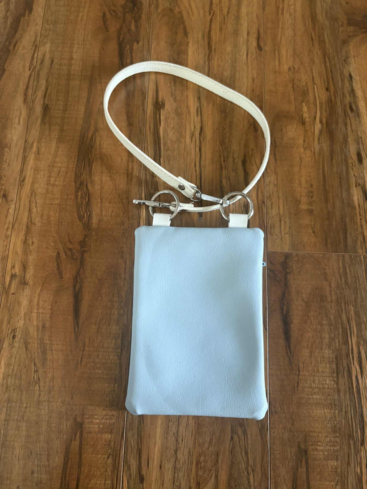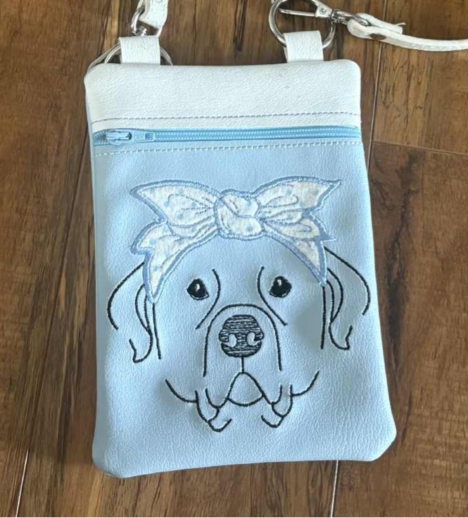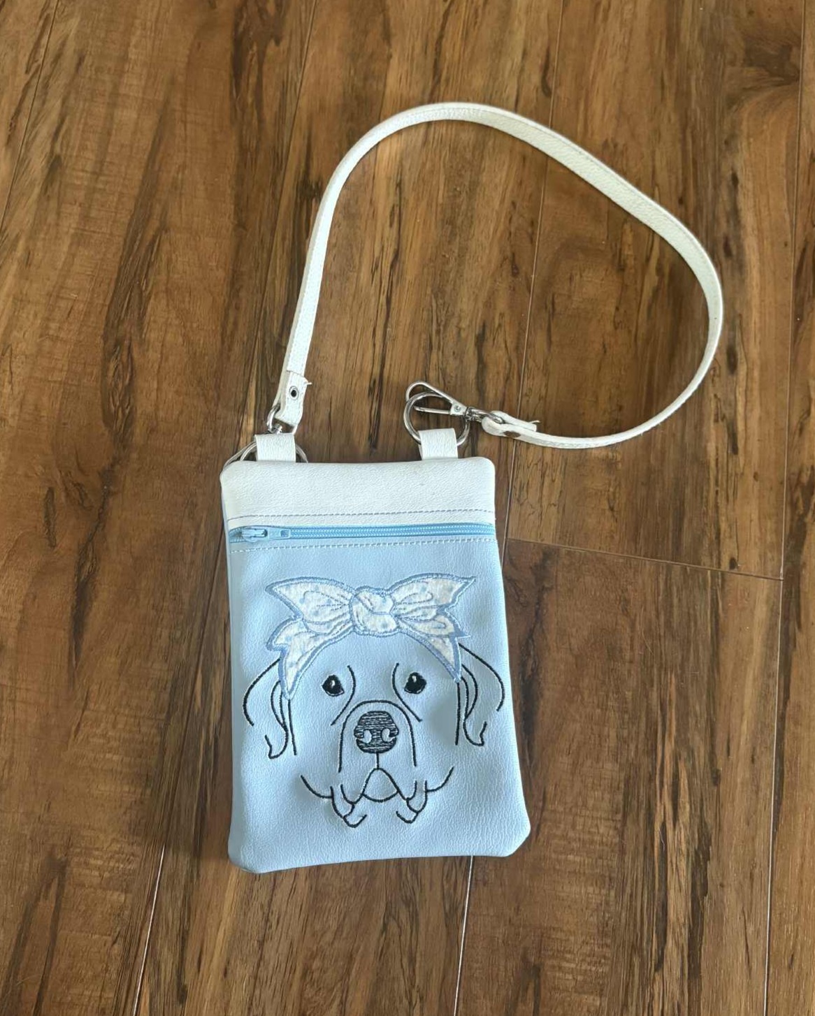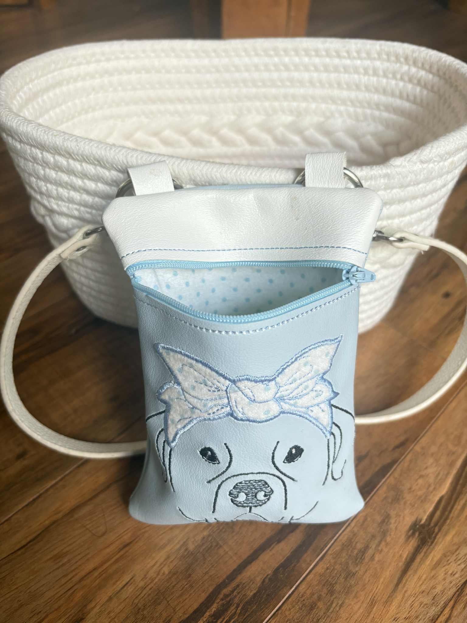 This sweet little handmade, embroidered crossbody bag is perfect for kids who love cute accessories! Made from durable vinyl with a coordinating cotton lining, it features an embroidered puppy wearing a white and blue polka dot bandana that’s sure to bring smiles wherever it goes. Measures 4.5" x 6" – just the right size for small treasures
