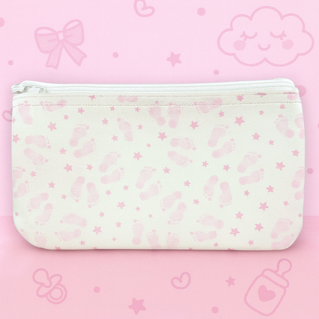 This bag is made from vinyl and has a cotton lining. Can be used alone, or use it in a bigger purse, tote, diaper bag, or backpack to carry your smaller items. Great for debit or credit cards, cash, coins, anything that usually gets lost at the bottom of your bag. Measures 6.5"x 4". Wipe clean with damp cloth